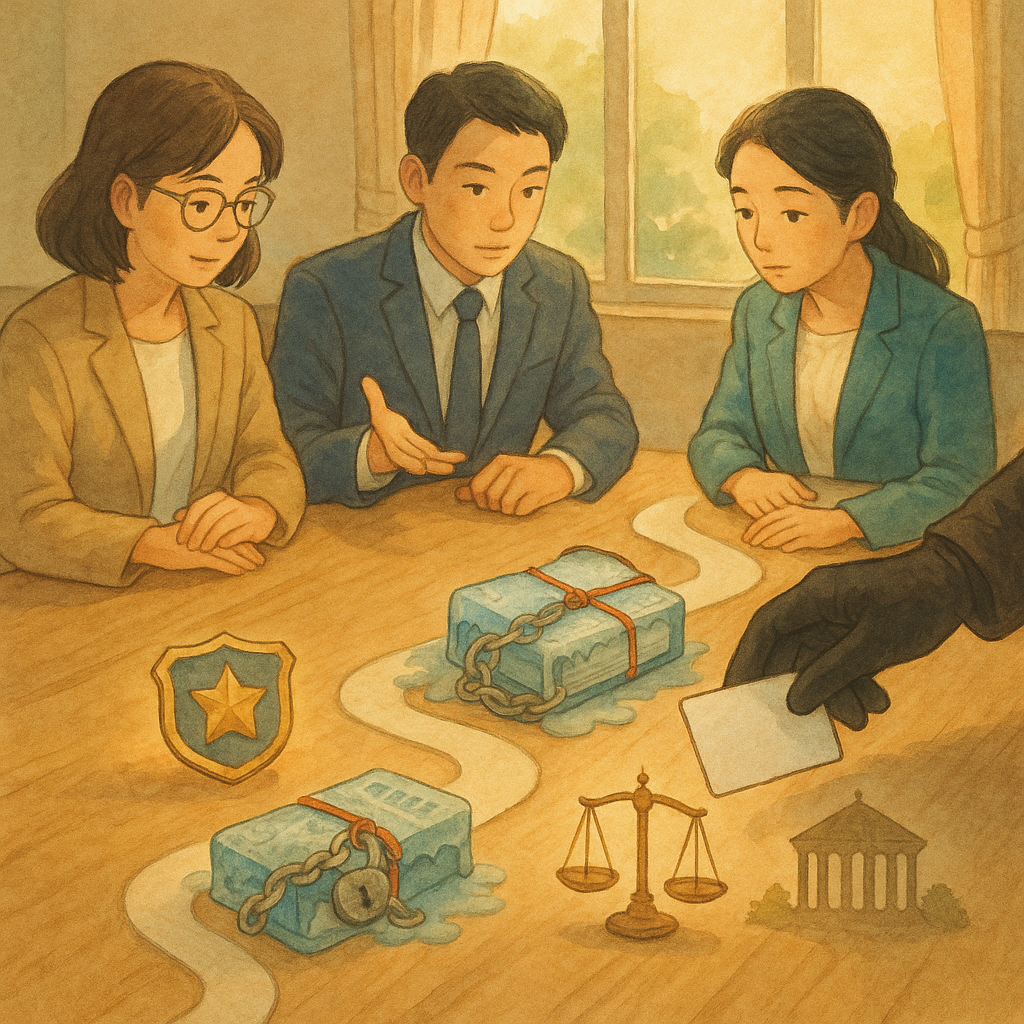 可執行的自保步驟包括凍結或更換電子銀行權限、變更密碼、掃毒與檢查通訊裝置、完成交易地圖與提供銀行參考。申訴不保證立即復權但能建立善意。 若銀行已通報可疑交易或限制未解除,或你收到刑事偵查通知,建議諮詢律師以規劃陳述重點,並說明「未移轉控制權」與「交易正當性」。